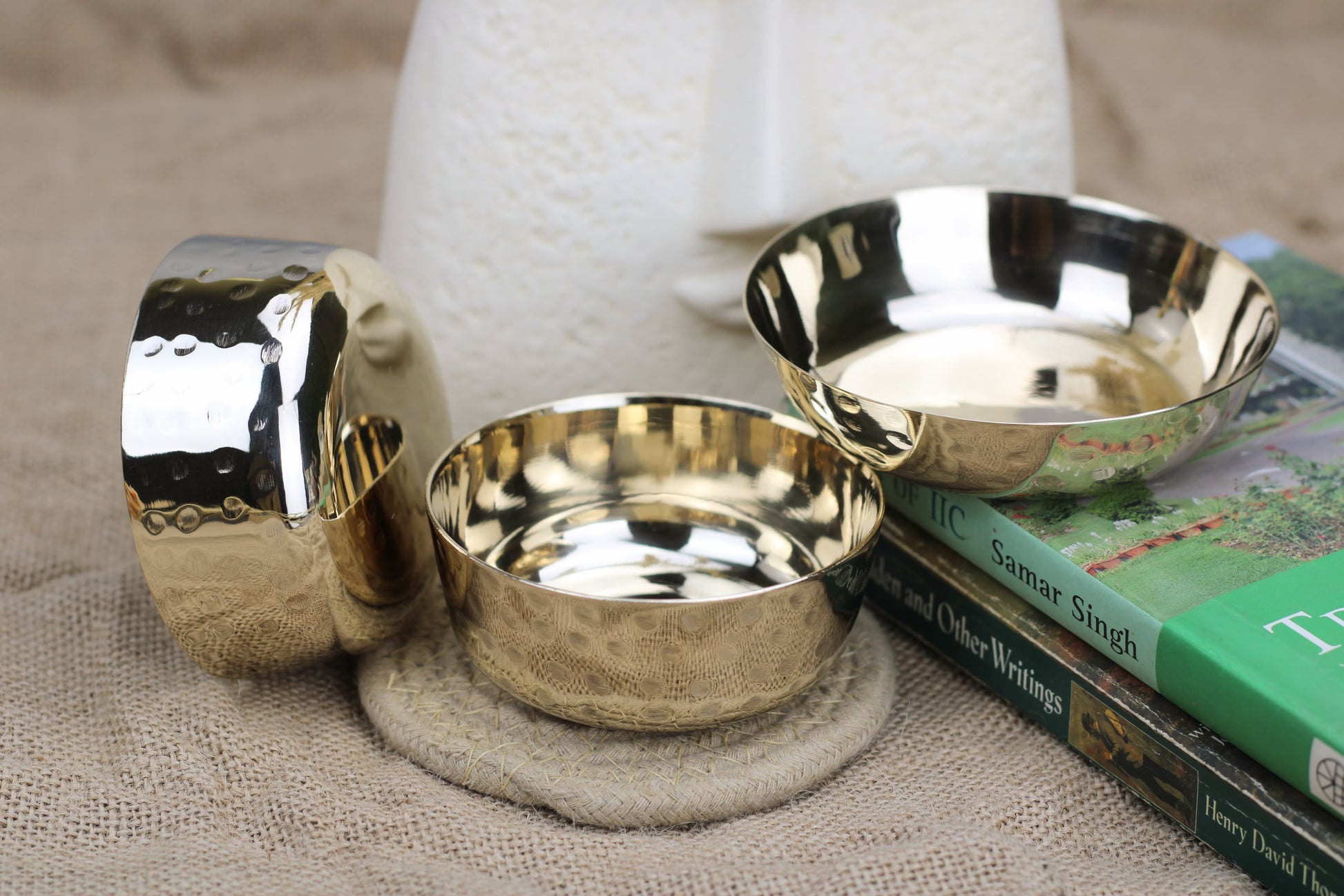 Drinking water stored overnight in a bronze vessel helps balance the body’s tridoshas (Vata, Pitta, Kapha) according to Ayurveda. The copper content in bronze naturally purifies the water, killing harmful microbes and enriching it with essential trace minerals. This morning ritual:
